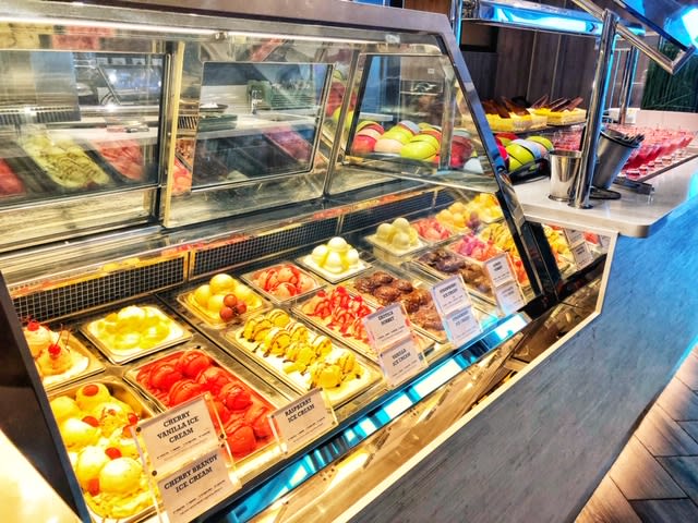 開放的なブッフェレストランで、もちろん毎日メニューは変わり、寄港地ならではのメニューも出るので、私たちは結局ここに毎日行きそう(笑)