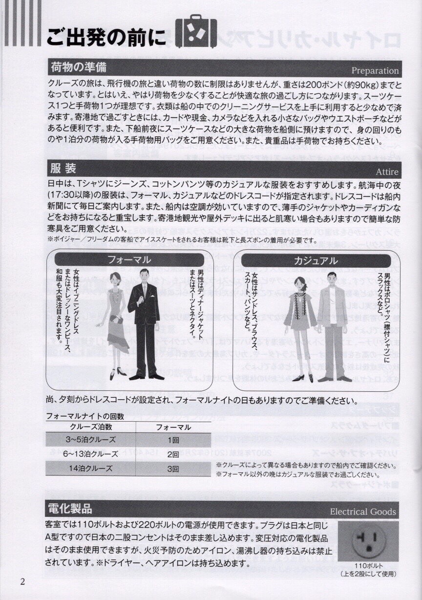 フォーマルの考え方は、船の格式、年齢、ステータス等により大きく変わると思いますが、重要なことは服装のことで疲れないことと楽しいクルーズライフを送ることではないでしょうか?