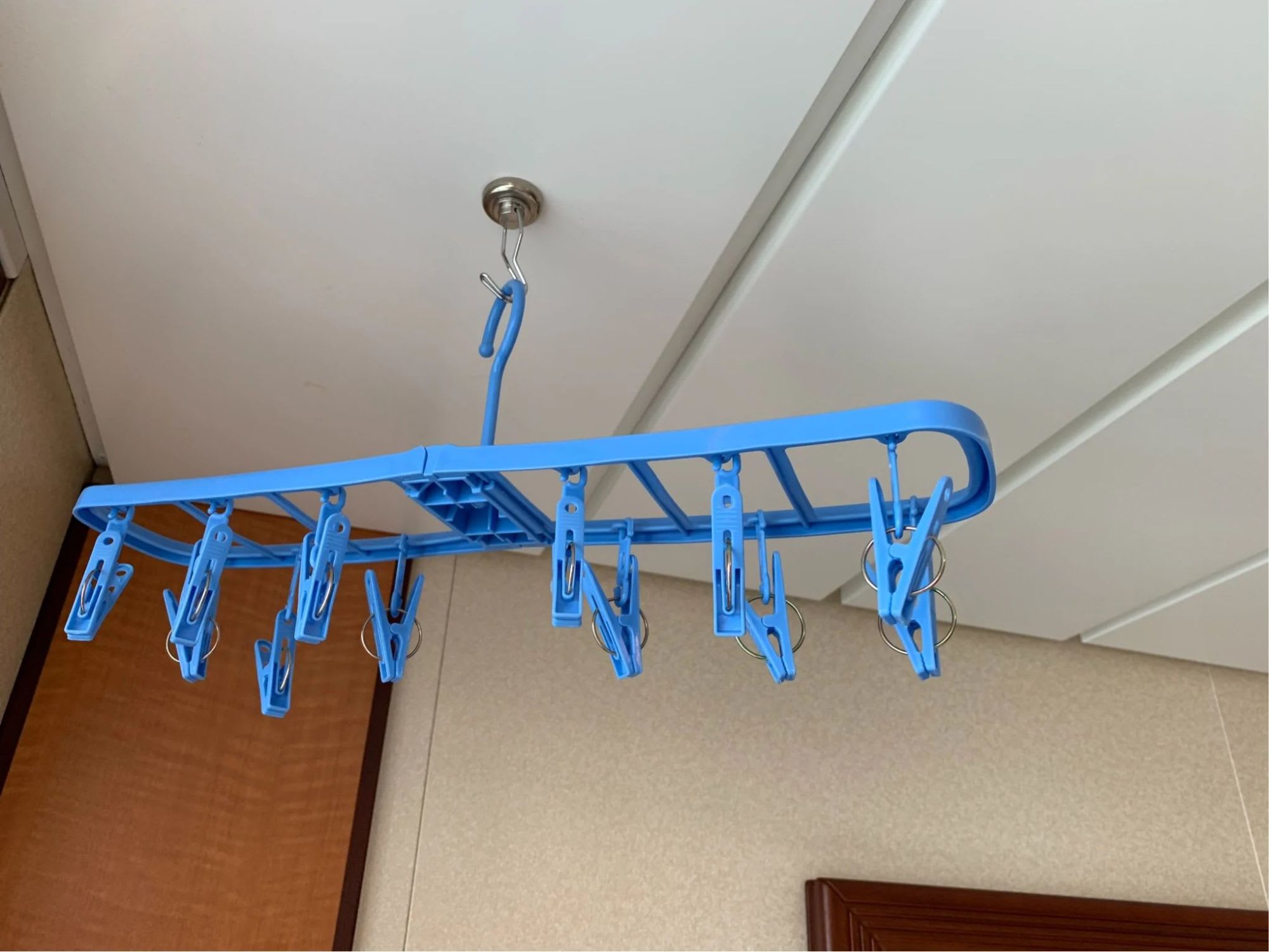 - シャワーを浴びる⇨小物をシンクで洗濯⇨タオルに包み水分を吸収させる⇨水分が多い時はベランダで水切り⇨水が切れたらエアコンの吹き出し口の近くに吊るす⇨1日で乾きます。
