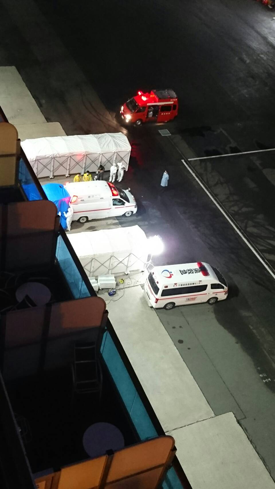 「先ほど、検疫官が来て検体採取をしていった。19日下船を目指して検査する、とのこと。問題なければ移動(どこか不明、多分、感染しない場所への移動?、特別チャーターした病院船?)」