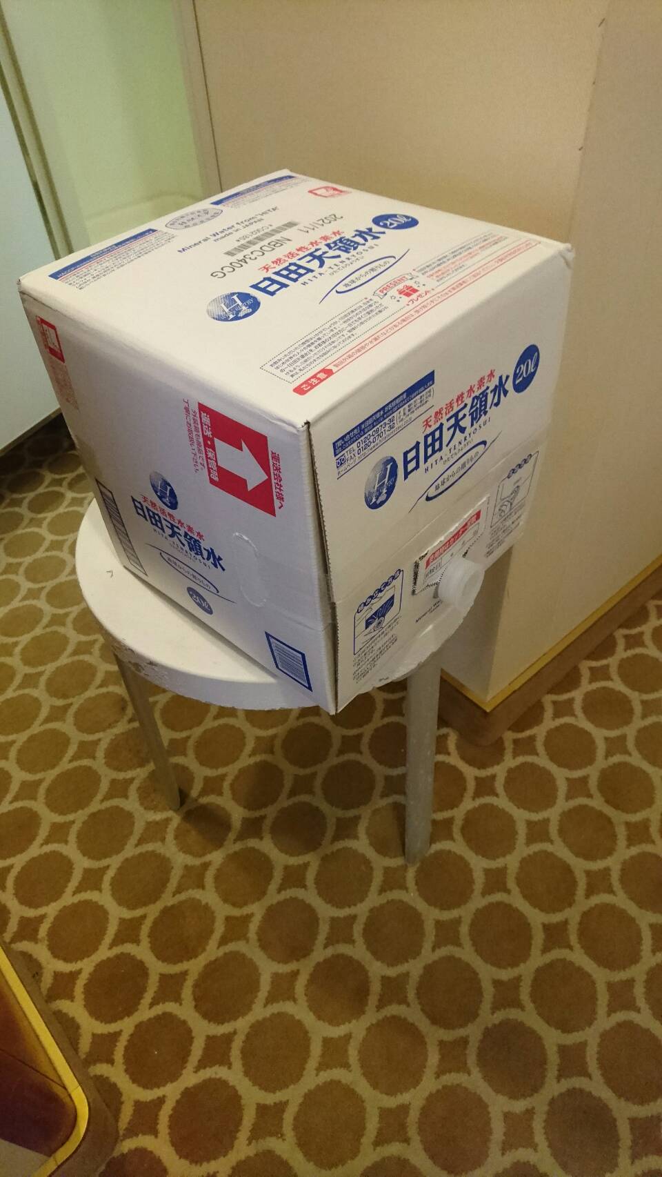 20L入り水の配給受ける。支援品?、でも20kgもある重量物を高齢者が扱えるか?