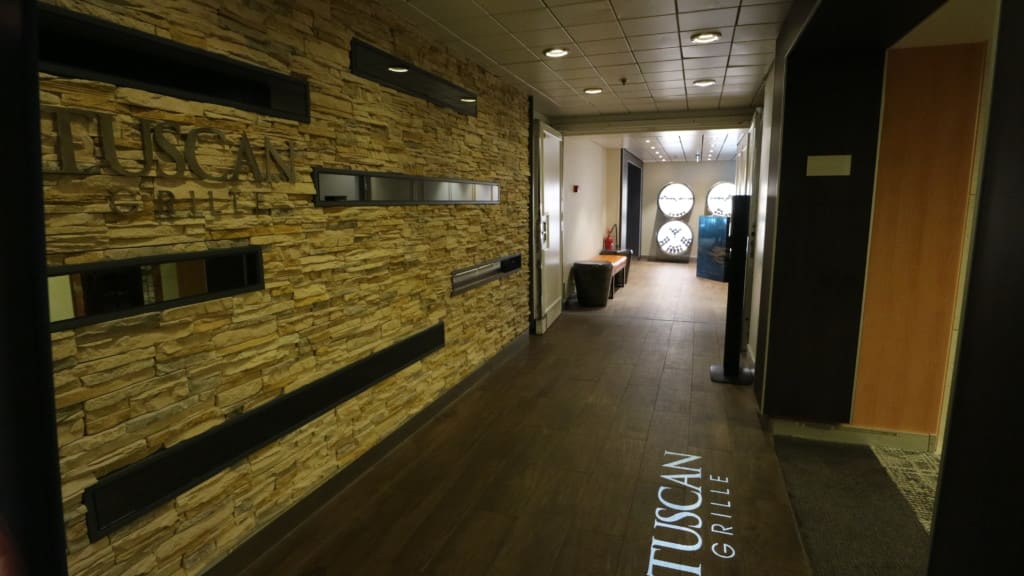 スペシャリティレストラン「トスカーナグリル」はデッキ3後方にあり、ちょっと入り口がわかりにくい「隠れ家」的なイタリアンステーキハウスレストランです。