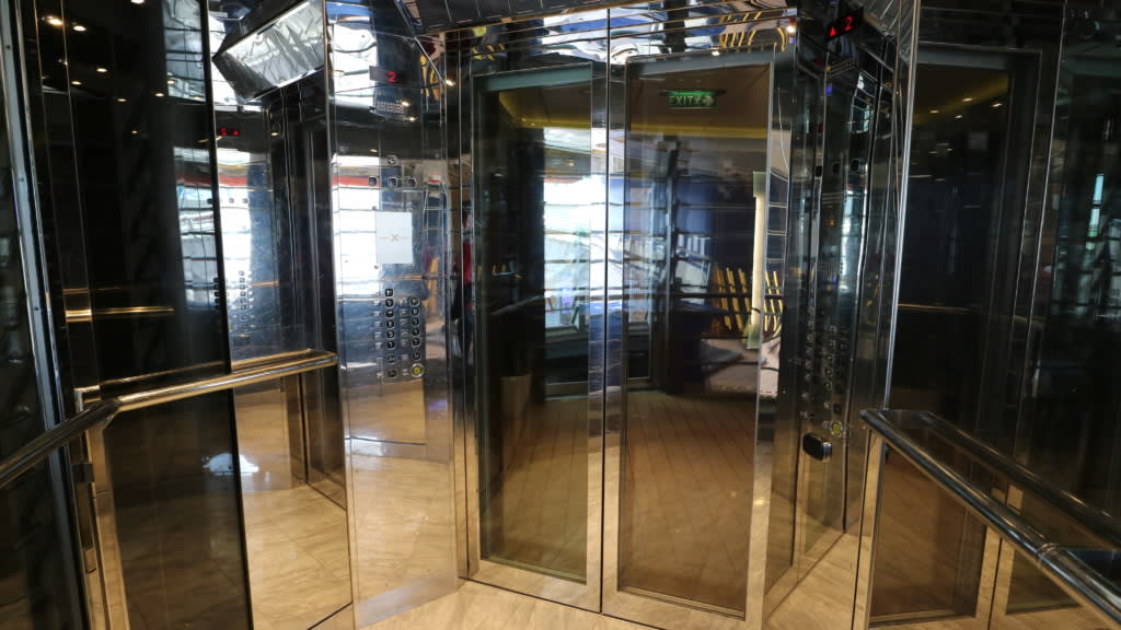 エレベーター内。