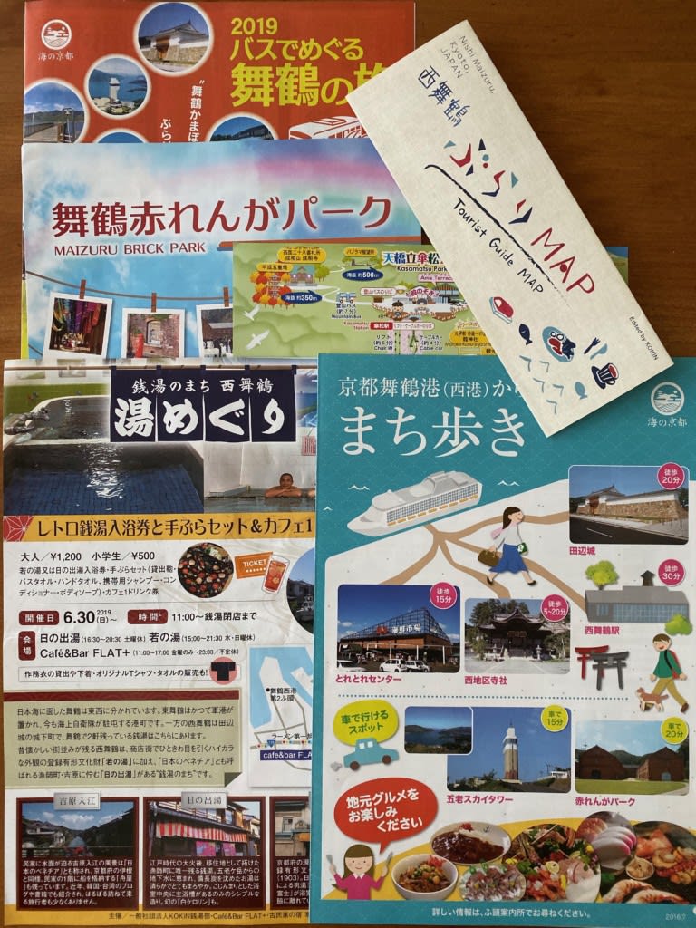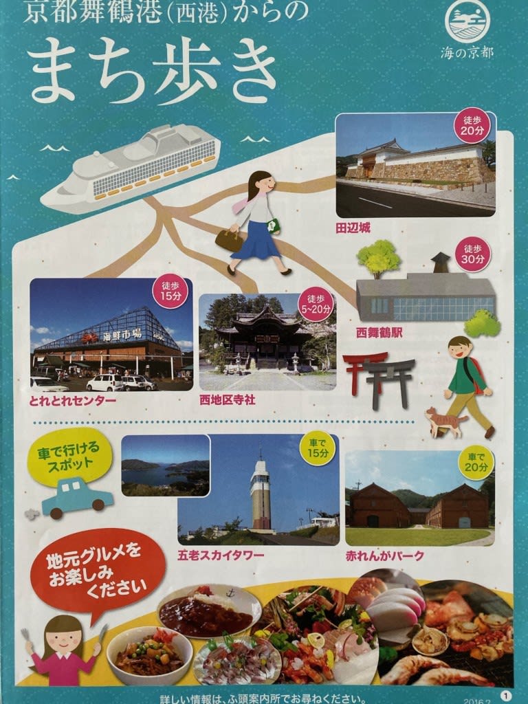 セレブリティ・ミレニアム船内でもらうことができた舞鶴の種々の観光案内のパンフレットは、舞鶴港(西港)周辺や近場でブラブラしたい人向けが多く助かりました!