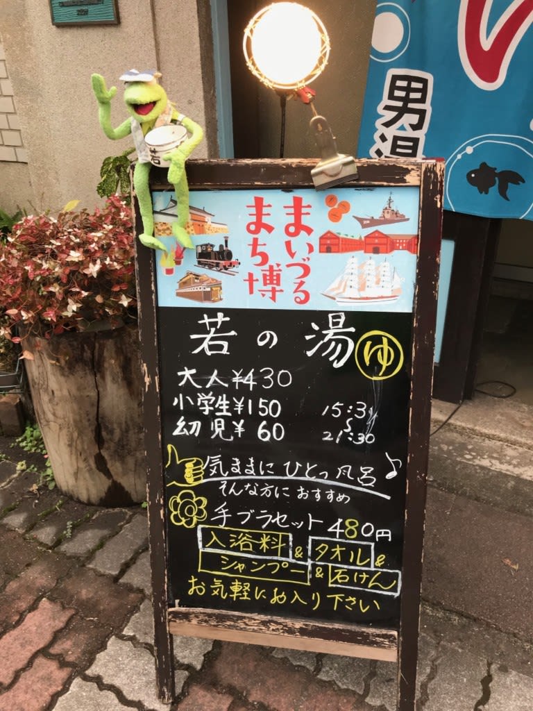 シャトルバスには乗らず、西舞鶴駅から徒歩で銭湯『若の湯』を目指しました。目指したはいいけれど…やっぱり駅から歩いて行くのは遠かったです。真夏日の9月末、到着した頃には全身汗だくでちょうど良かったです。