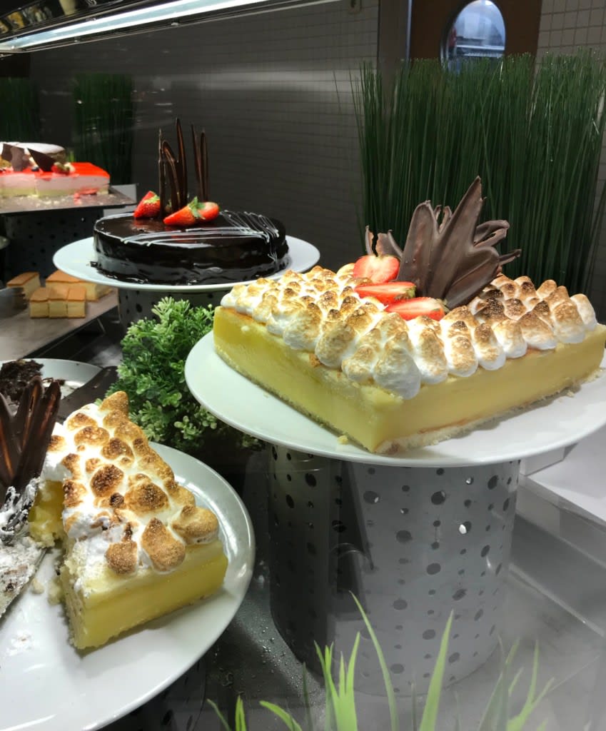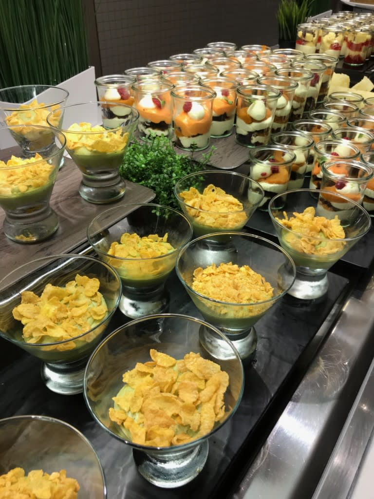 セレブリティ・ミレニアムのブッフェ、グラスデザートの種類が豊富過ぎて…選びずらい(笑)!デザートを普段全く食べないのにうれしい悲鳴、何度上げたことか〜。グラスデザートやケーキ類、デザートの彩り、ビジュアルも素敵です。
