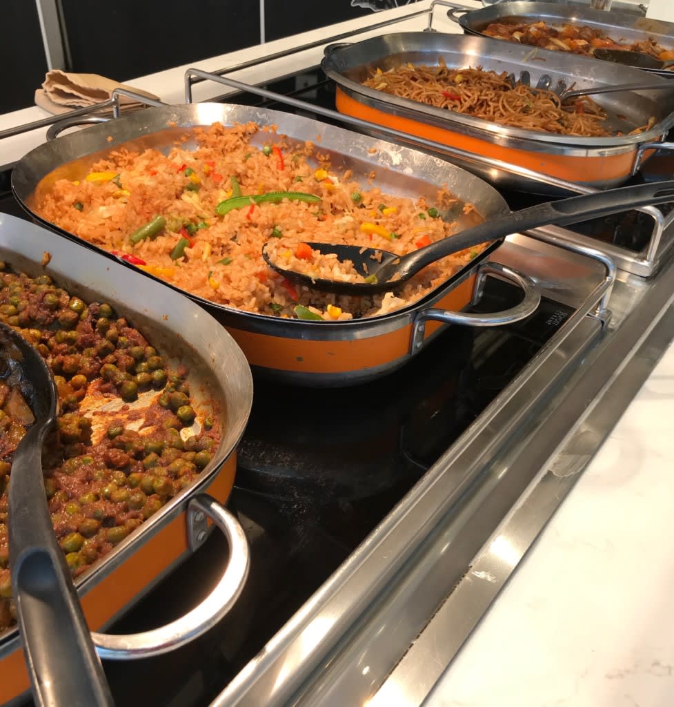 勧められるままに一皿目はここのグリルコーナーでのお料理!甘くない、少し硬めのシュー生地。「挟んで食べる」と教わったものの別々に食べました。パンより軽くてお肉ランチには相性がいいかも!と思いました。