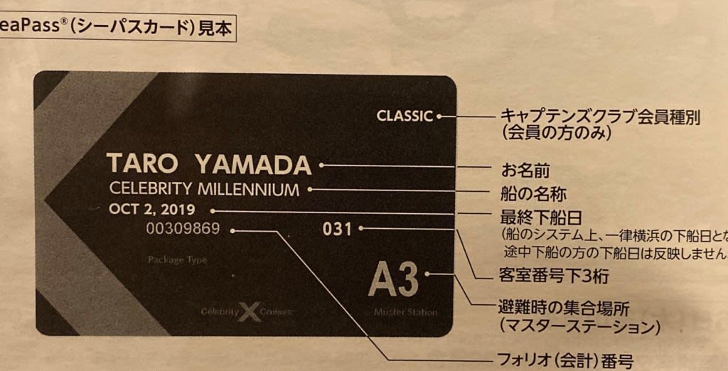 一番最初に入力するAccount numberは、クルーズカード(シーパスカード)の表面、最終下船日の日にちの下に書かれてある数字フォリオ(会計)番号↓がそれに当たります。