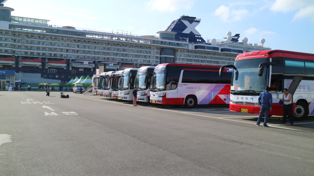 セレブリティミレニアムでは釜山港から市の中心「ホテルフォーレ(Foret)」往復のシャトルバスが出ていました。