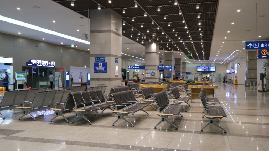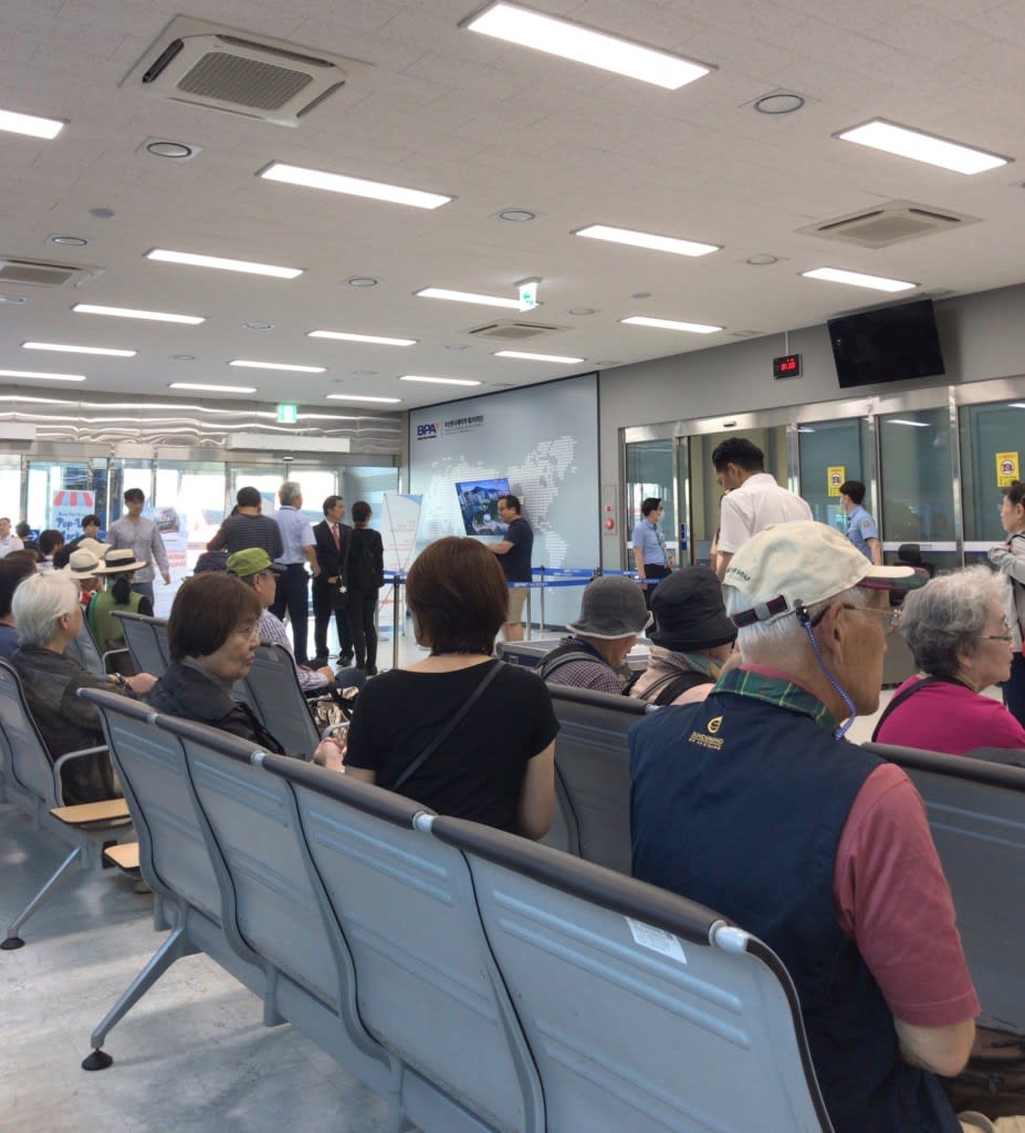 釜山の第二クルーズターミナルに降りるのは初めてでしたが、出入国口前のロビーはものすごく狭くてびっくりです。