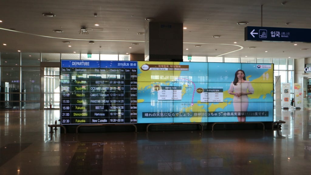 ご時世か、時間帯かわかりませんが…大阪や九州行きを含むの高速船の待合室はガラ〜ン…。2015年8月に新設されたターミナルはとても綺麗です。