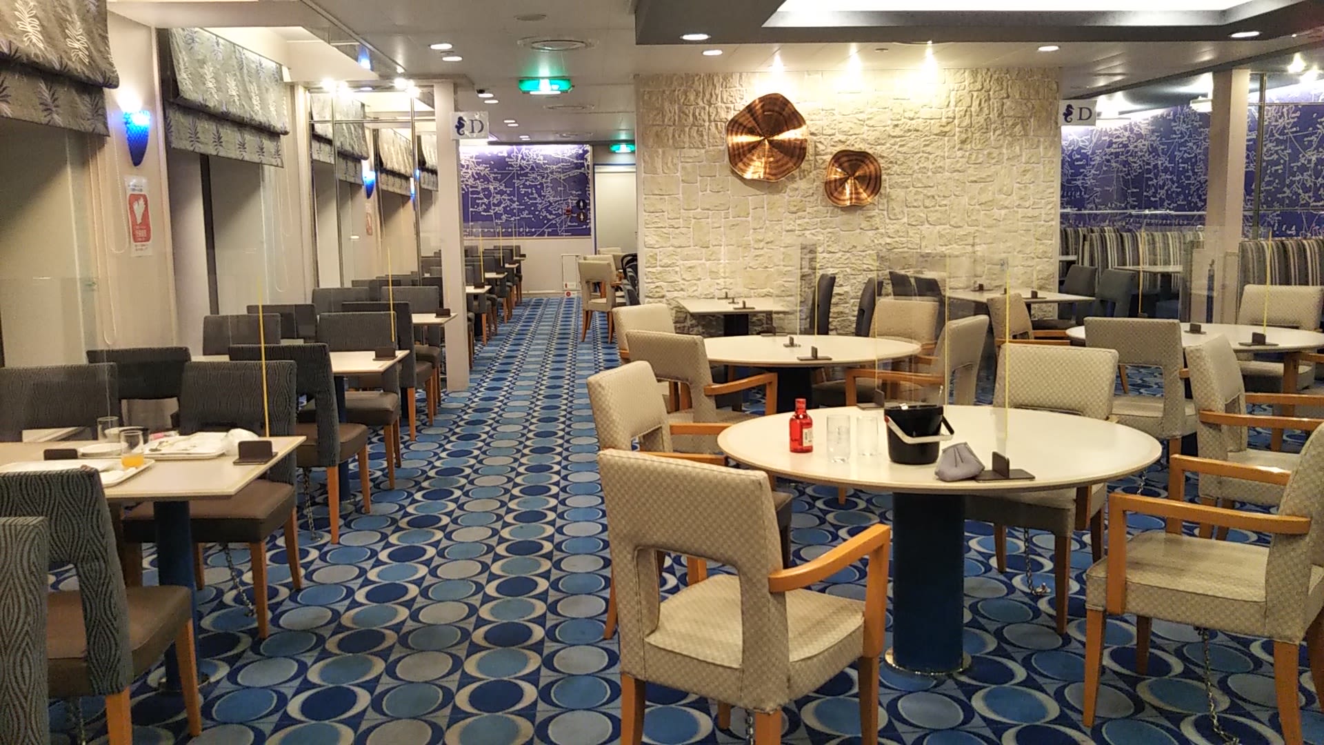 【「いしかり」のレストラン〚サントリーニ〛。内装デザインが名前負けw 全乗客の内、4割程度利用の印象】