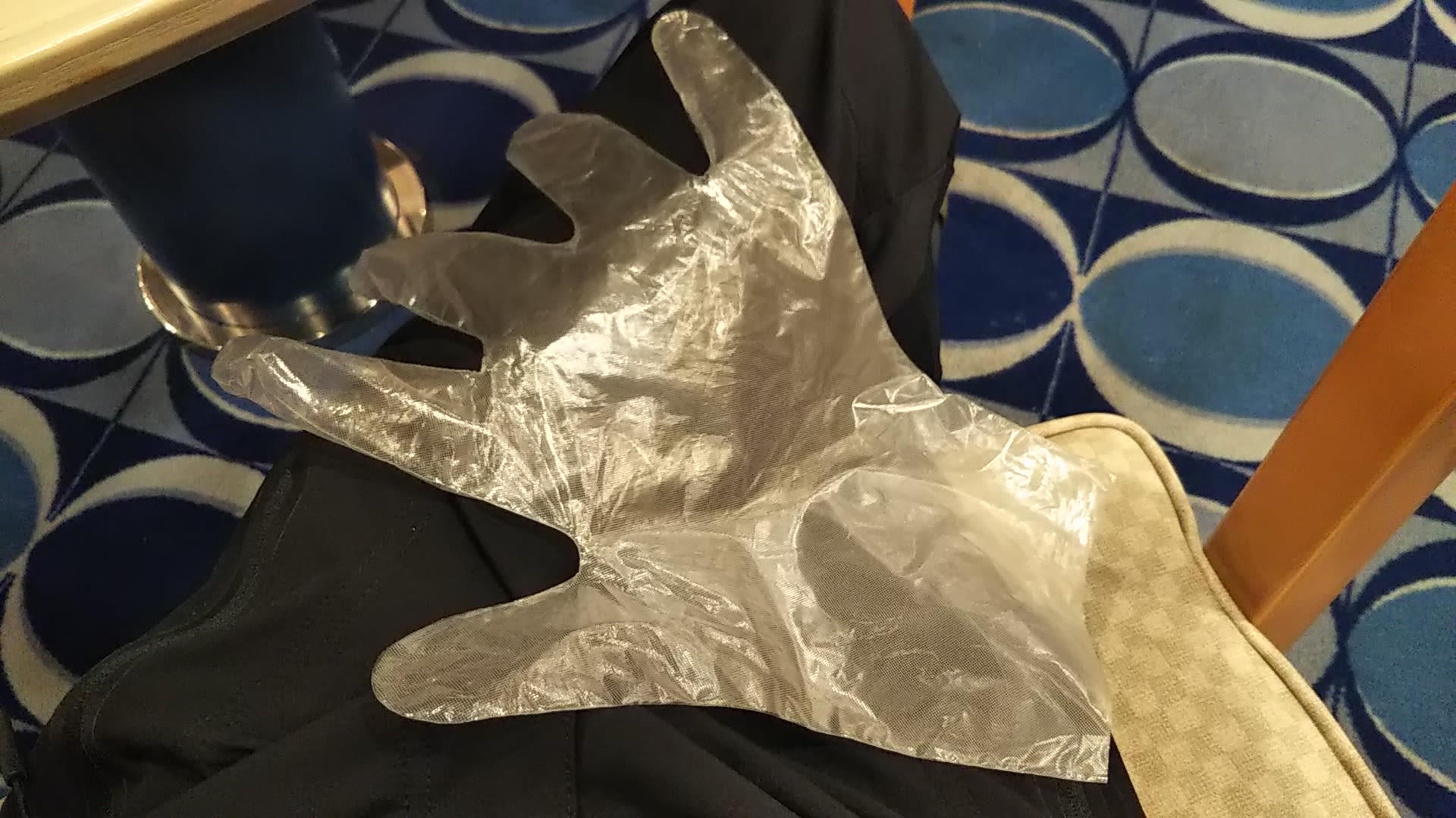 【「使い捨て手袋」。『毎回新しいのをお使い下さい』と徹底されていれば納得もするが…】