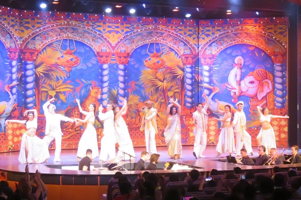 ロイヤルカリビアンのこのプロダクションショーでは、映画のシーンに合わせて多彩で豪華絢爛なセットがいくつも使われていました。おぉ(゚ロ゚屮)屮