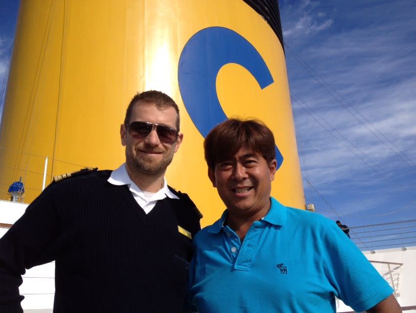 インタビューをするため船長室に出向き、船長に挨拶した際、船長から、以前君からインタビューを受けたよと・・・なんと2011年2月に乗船したコスタ・マジカの船長だったんです。船長が私のことを覚えていてくれました。