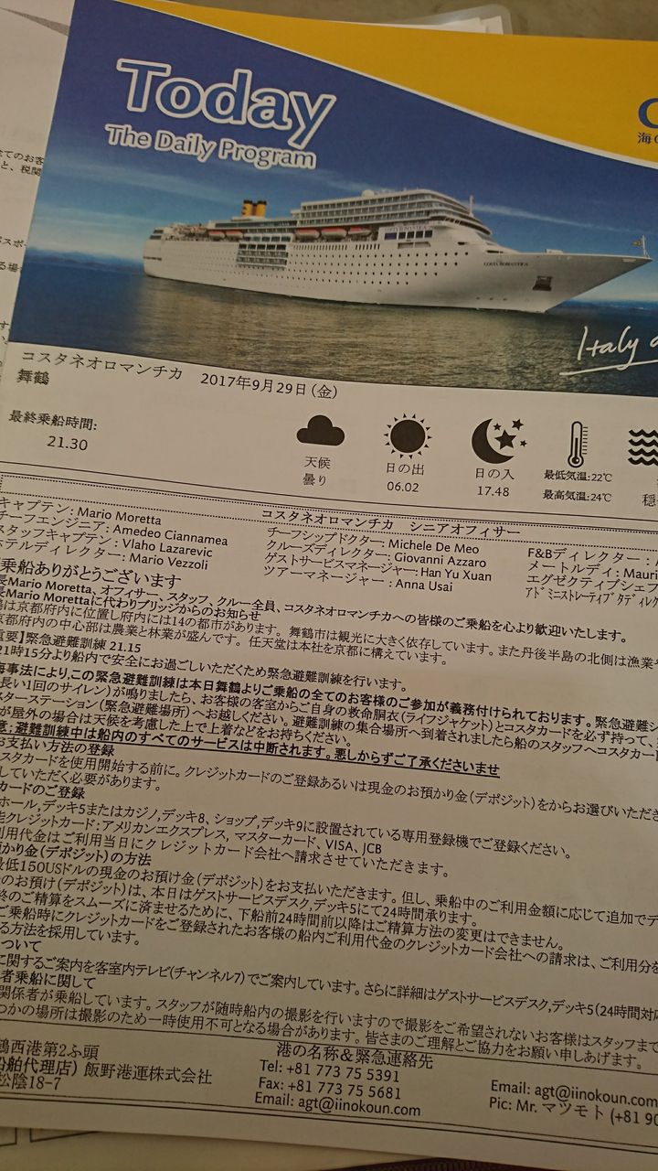 コスタ・クルーズは、近年日本航路も力を入れているとのことで、文章もきちんと読める内容でしたし、誤字もほぼありませんでした。船内には日本人スタッフも多くいるので、きちんとチェックしているんでしょう。