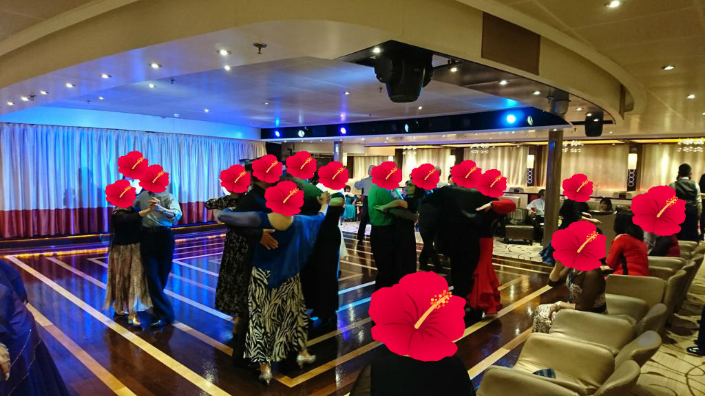 さて、ビンゴ大会が終わった後は、デッキ9の「キャバレー・ビエンナ」にてダンスショーを鑑賞します。コスタ・ネオロマンチカにはステージ付きのホールなどはないのですが、その分、パフォーマンスが目の前で楽しめるのはいいなと思いました。と言っても他の船に実際に乗ったことはないんですけどね・・・。