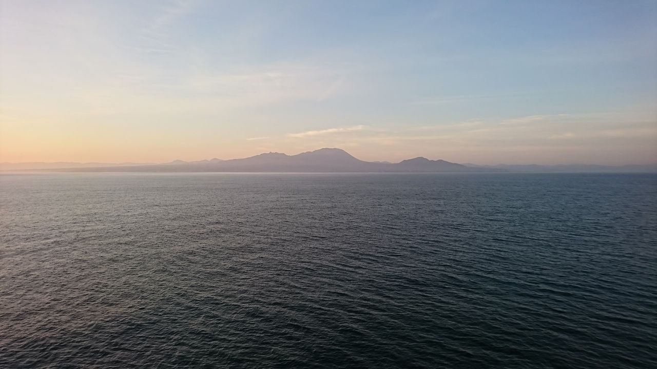 デッキ11に朝の空気を吸いに行くと、景色の向こうに大山(だいせん)が見えていました。