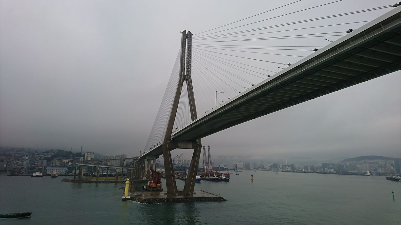 釜山というか、韓国自体が人生初の私ですが、まずは釜山名物の釜山港大橋を通過。