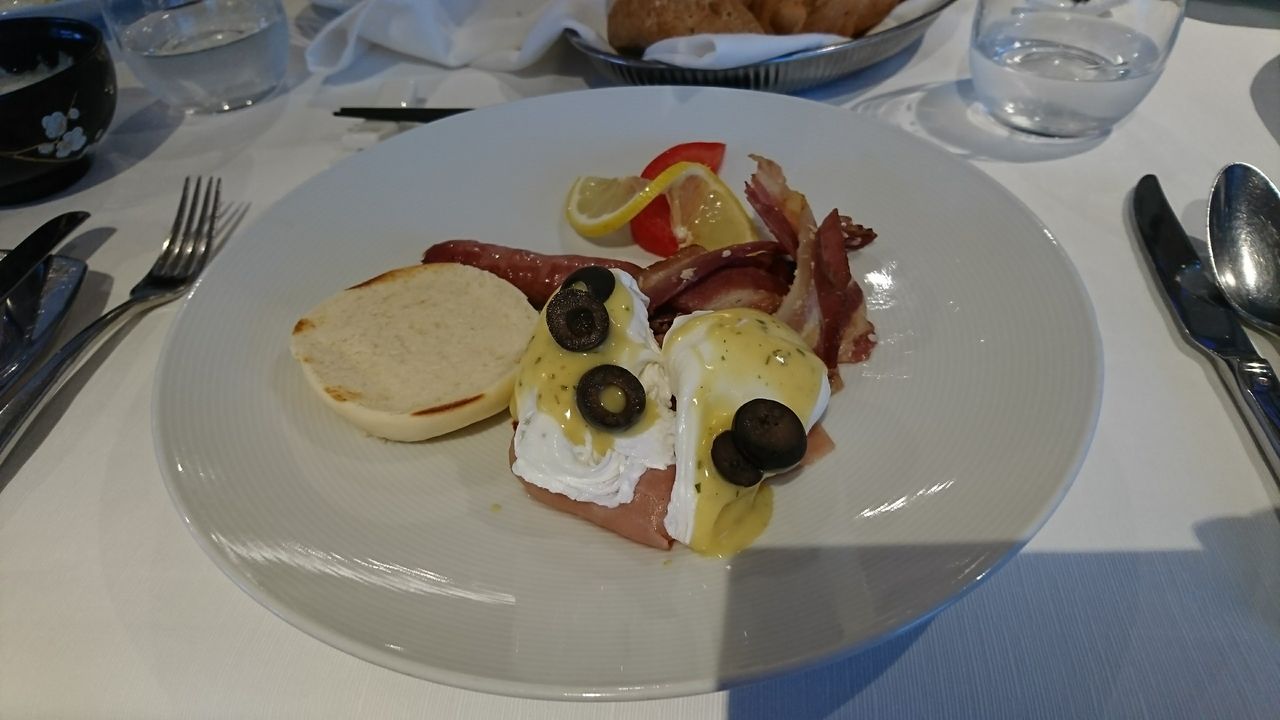 船を散策していたら、朝食の時間になったので、今日も「ラ・フィオレンティーナ」にて朝食を頂きます。エッグ・ベネディクトが気に入ったので、本日も注文。