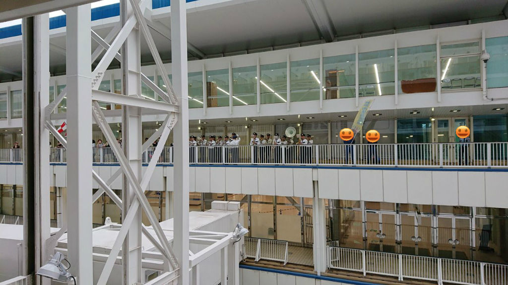 訓練が終わってデッキに出ると、出港セレモニーが始まったところでした。