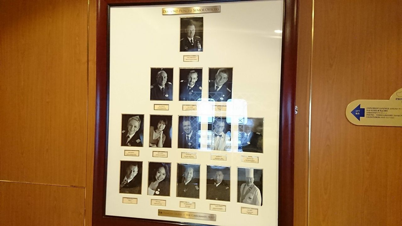 集合場所に移動中に、船のオフィサースタッフが紹介されているパネルを発見。