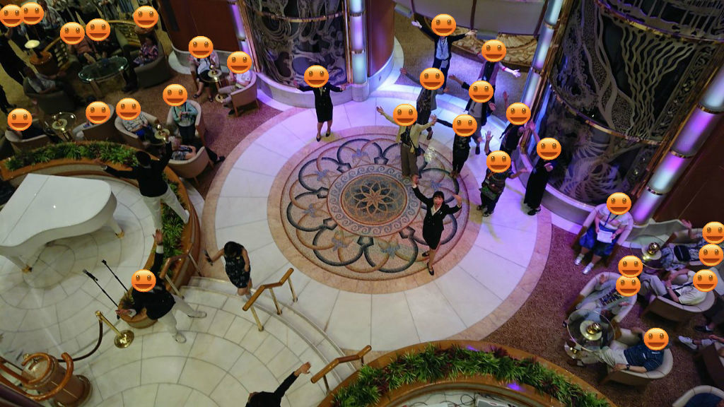 アトリウムでは、早くも出港パーティでスタッフとお客さんがノリノリで踊っています(笑)