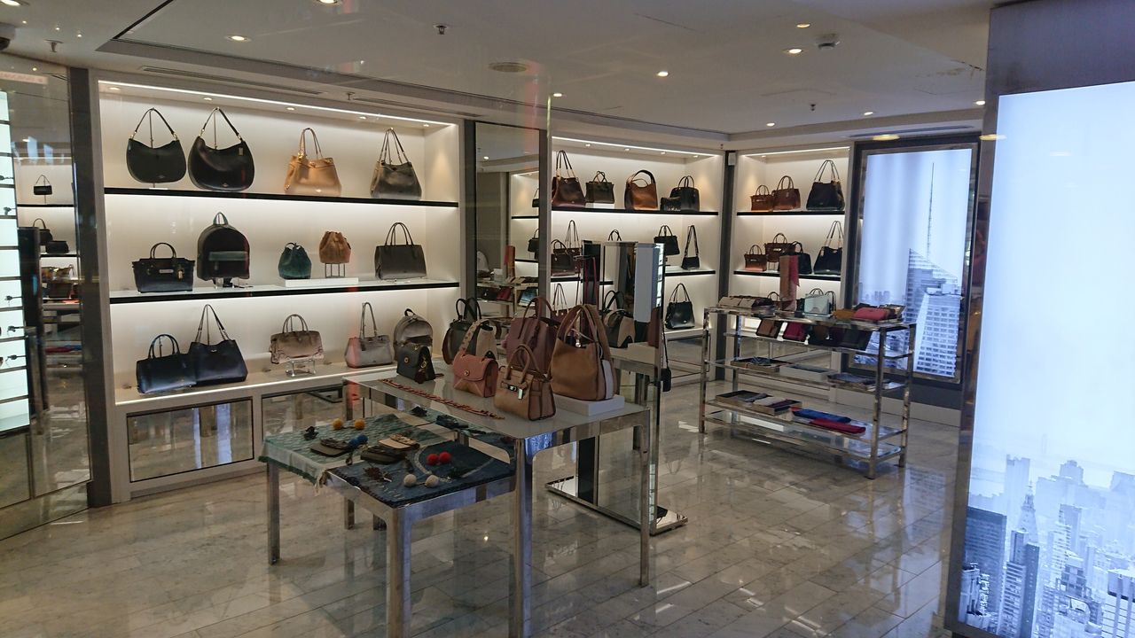 出港前なので今はまだお店は閉まっていますが、所狭しと並べられたブランドバッグ。
