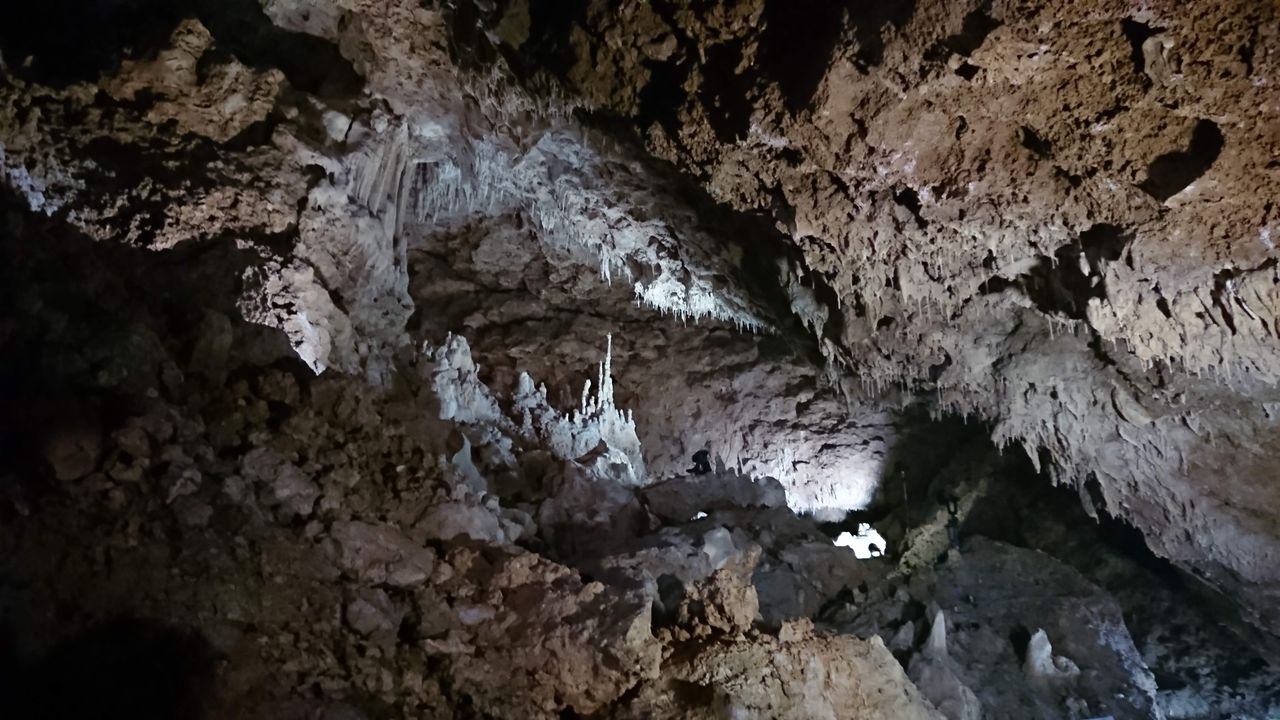 徒歩数分で向かえる鍾乳洞と、車で1分ほどの場所にある鍾乳洞があり、まずは徒歩のほうへ。