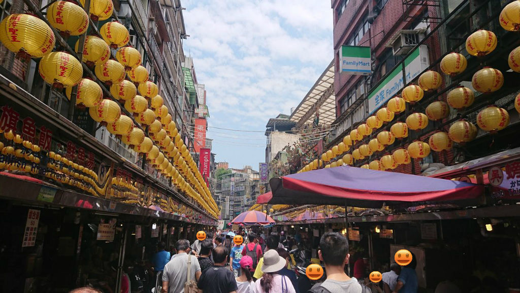 夜市という文字を見ると、夜間営業がメインと思いがちですが、昼間から多くのお店が営業しています。無数の提灯が吊るされており、夜は夜でいい雰囲気そうですね~!