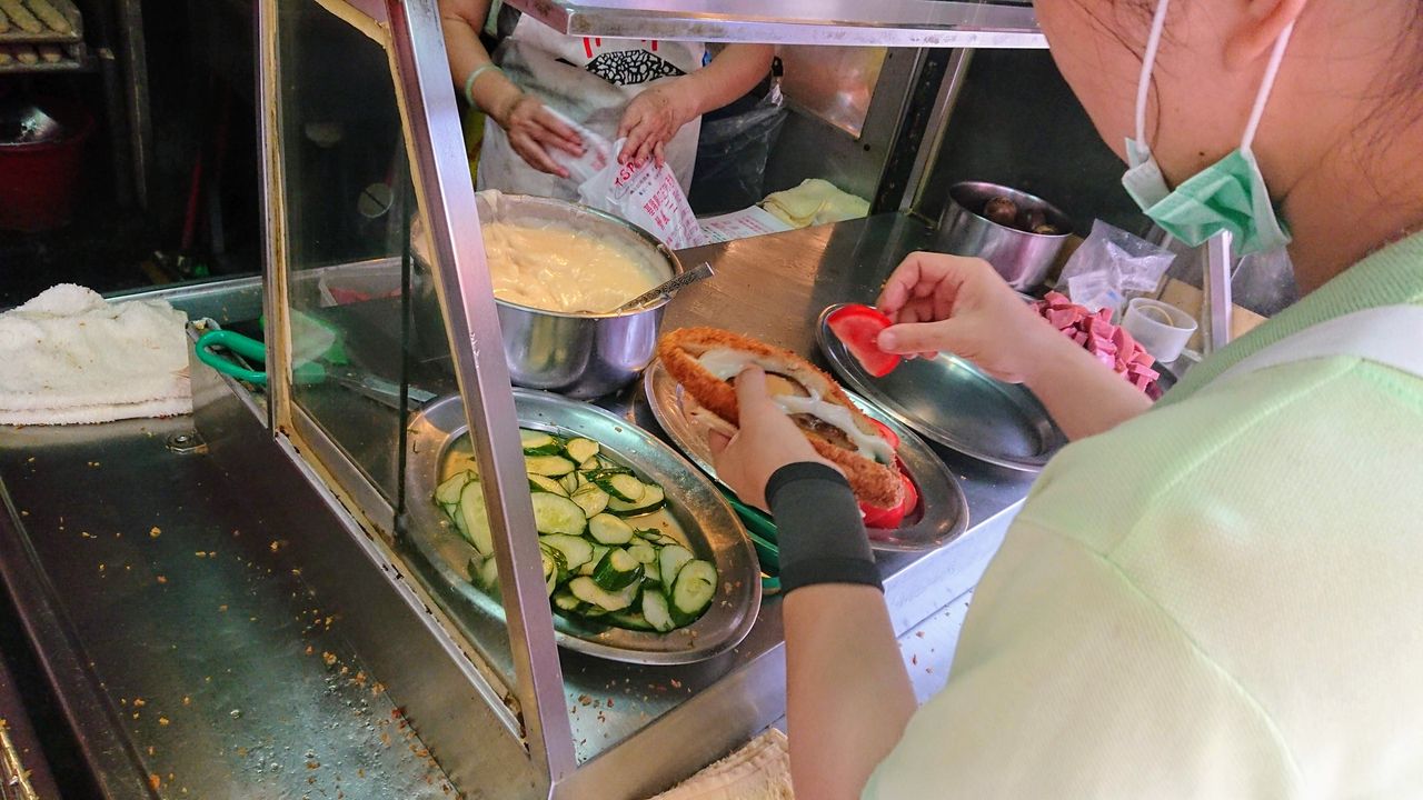 こちらの栄養サンドイッチはこの基隆の夜市の名物らしく、このサンドイッチ目当てでここに来る人もいるんだとか。なら食べるしかないでしょう!!お腹いっぱいだったとしても!!!