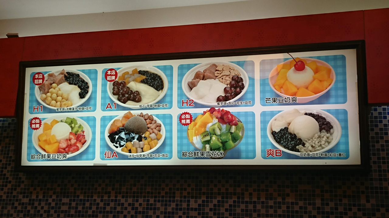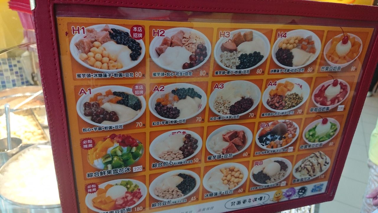豆花はお豆腐のような白いゼリーみたいなものだというのはなんとなく分かるんですが、蜜芋頭ってなんだ。粉なんちゃらは多分タピオカ。なんちゃら蓮子もなんでしょうか・・・。