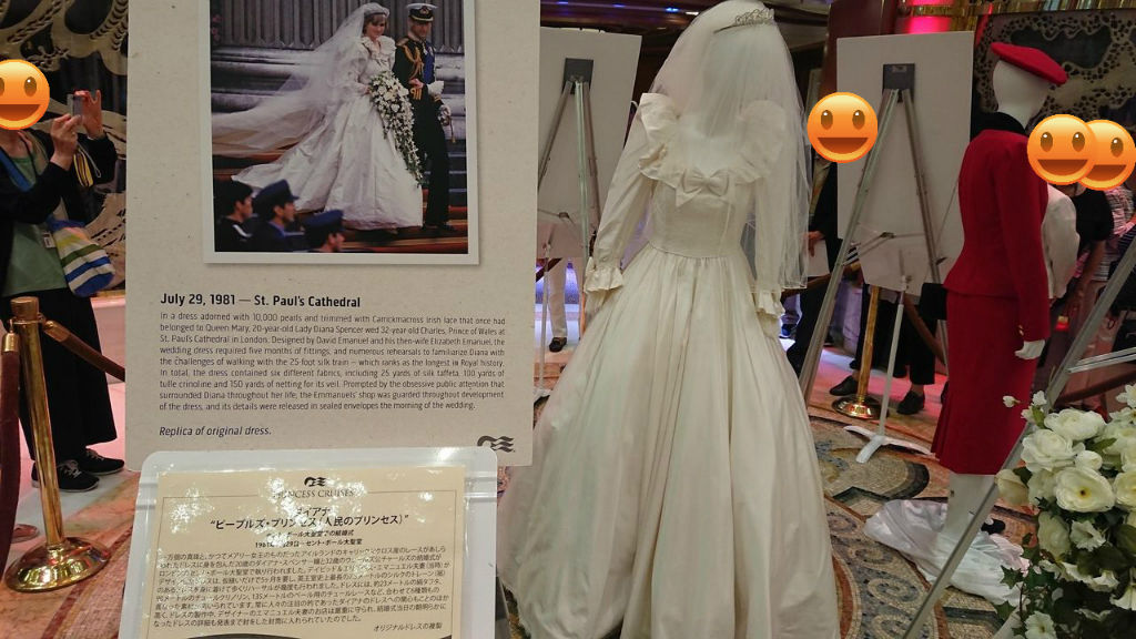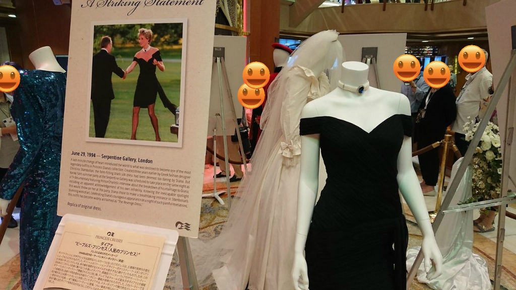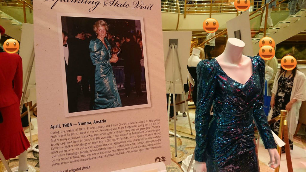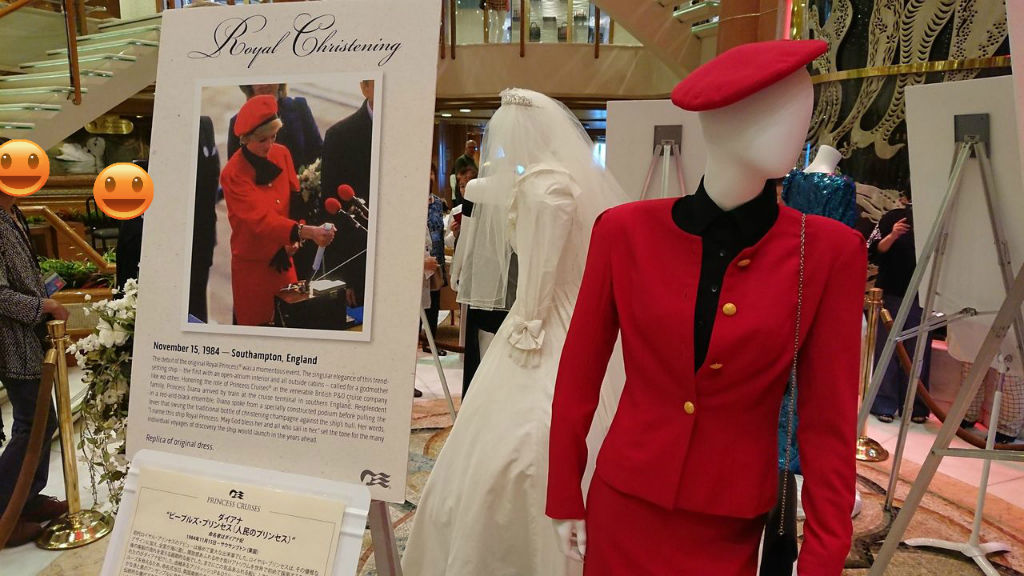 プリンセス・クルーズのゴッド・マザー(クルーズ船の名付け親)のひとりにダイアナ妃がいることから、ダイアナ妃がかつて着ていたドレスなどが展示されています。