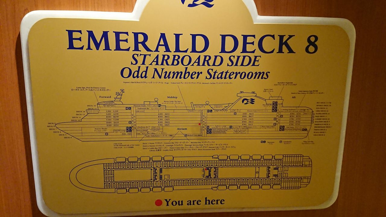 表記は恐らくどの船も似たようなものなので、1回慣れればクルーズ船で迷う回数は劇的に減ると思います!!是非ご活用あれ!!