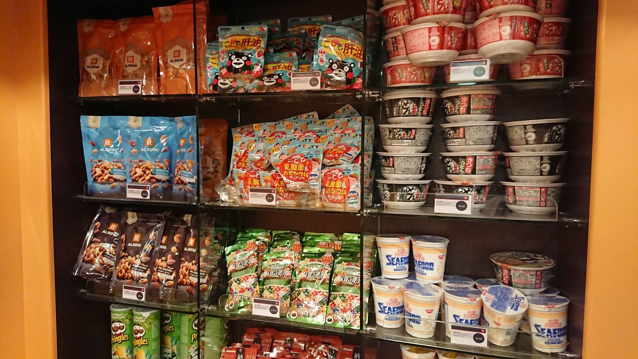 日本のどん兵衛やおかし等が売っています。