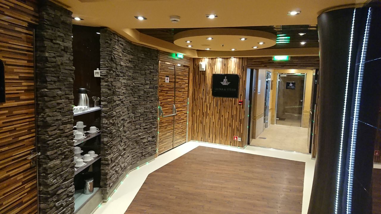 船内で運動ができる本格的なスポーツジムと、マッサージなどが受けられるスパがあるエリアです。