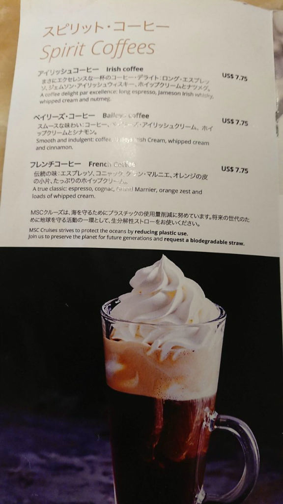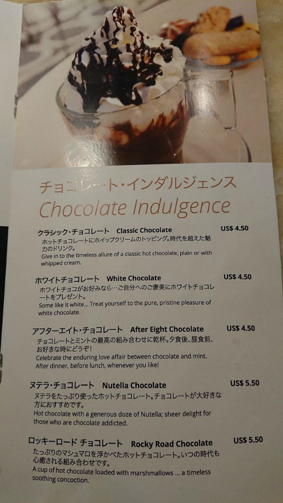 こちらのドリンクはコーヒーを中心に、スターバックスのようなメニューがふんだんに用意されています。もちろんプレミアム・ドリンクパッケージならこちらも飲み放題の対象になります。