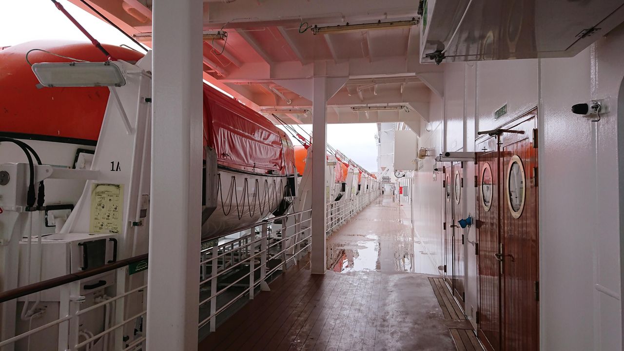 外のデッキに出てみると薄く曇っているものの、水平線まで見渡せます。