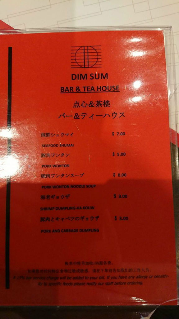 他のカフェならティーパックの緑茶で、しかもカップ1杯のみで同じ値段の3ドルなので、ディムサムバーのお茶のほうがコストパフォーマンスいいです。