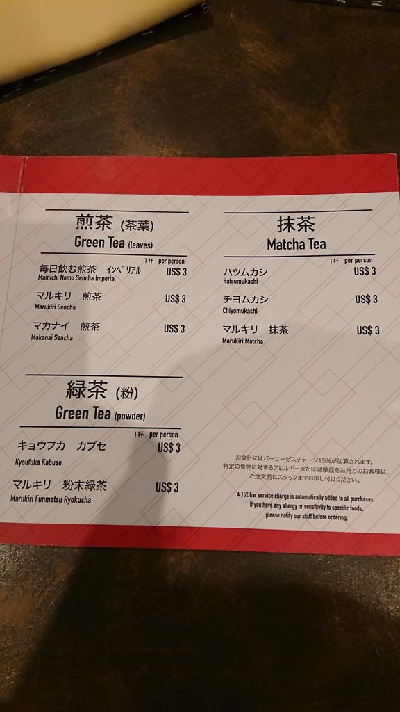 「茶葉」と書いてあるほうがなんとなく本格的っぽいのかな?と思って、インペリアルを注文。お値段は3ドル+15%のサービス料。