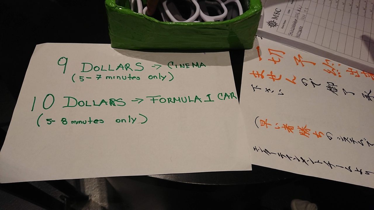 F1シミュレーターが10ドル・4DXシアターが9ドルです。