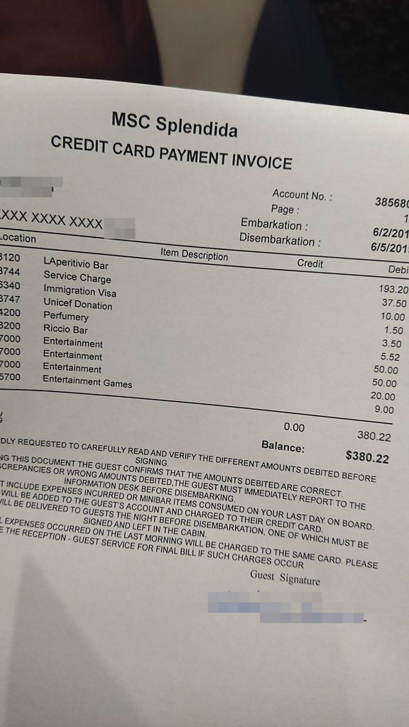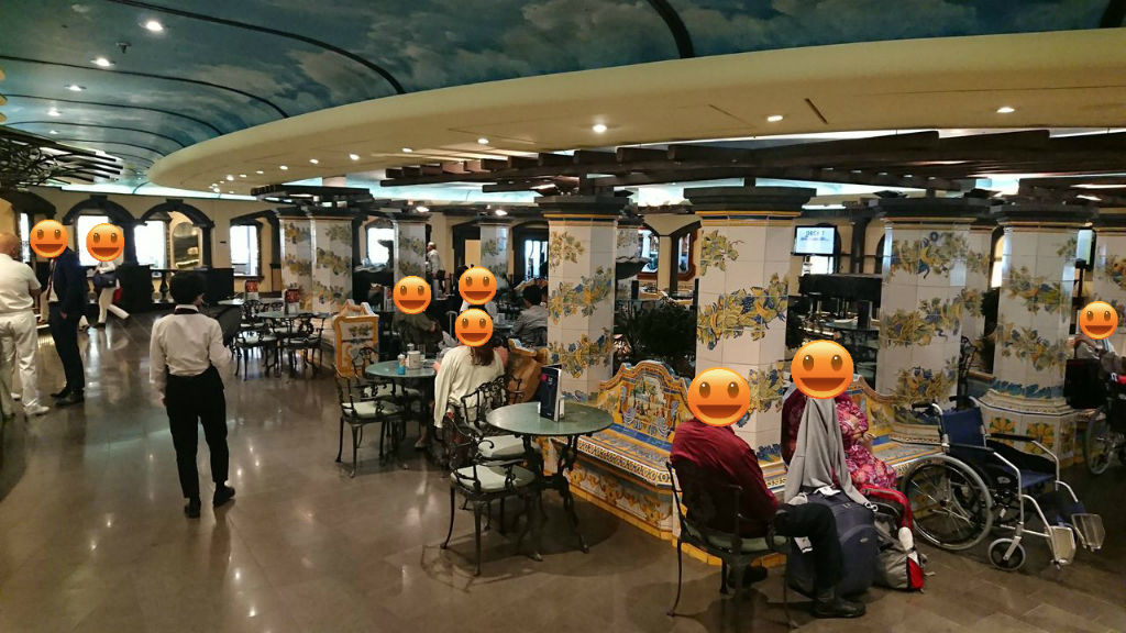 さて、部屋に戻って、今回のクルーズの清算をするため、荷物をまとめてアトリウムのレセプションカウンターにやってきました。