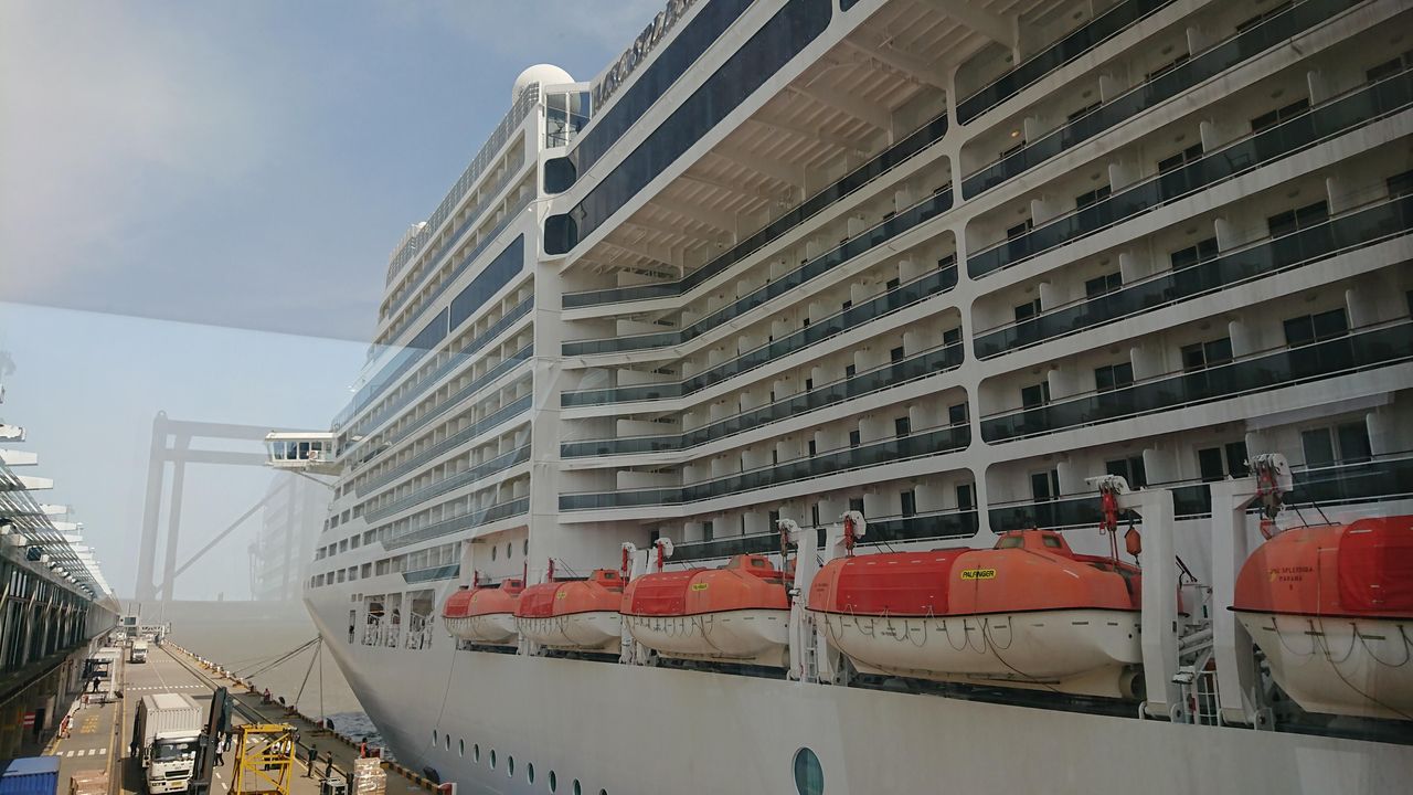 桟橋からMSCスプレンディダの巨大な船体を眺めます。