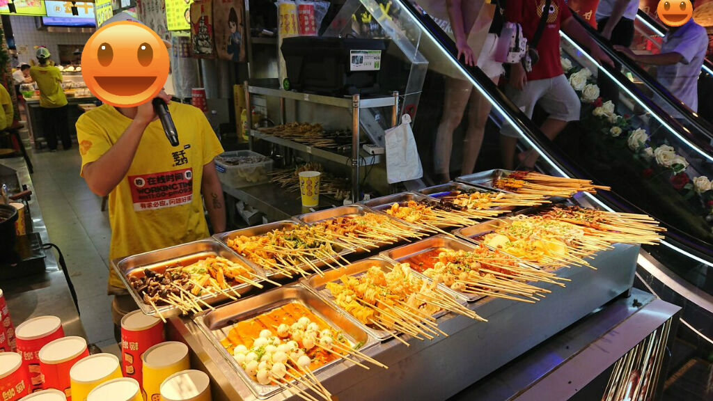 色んなお店の軒先にマイクを持った人がいて、中国語のラップを高らかに歌っています。