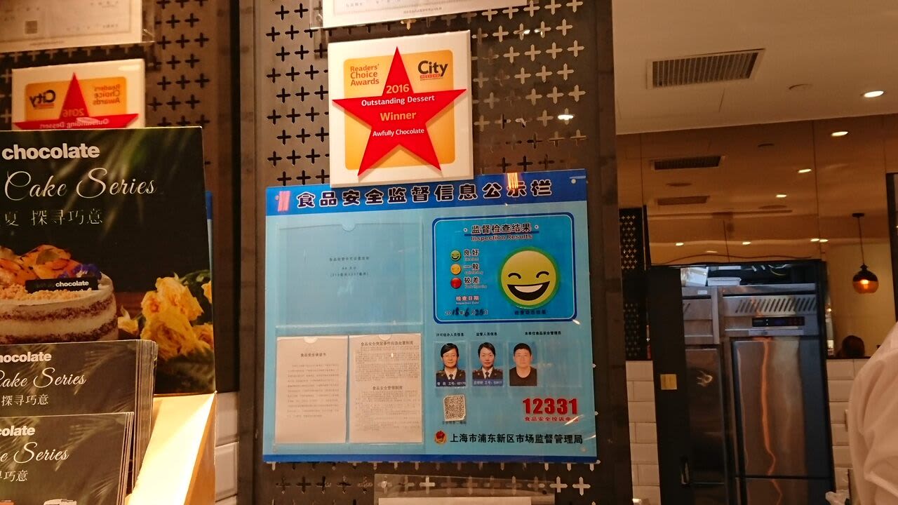 上海の飲食店では、こういう衛生レベルを表した看板を掲げているお店もあります。