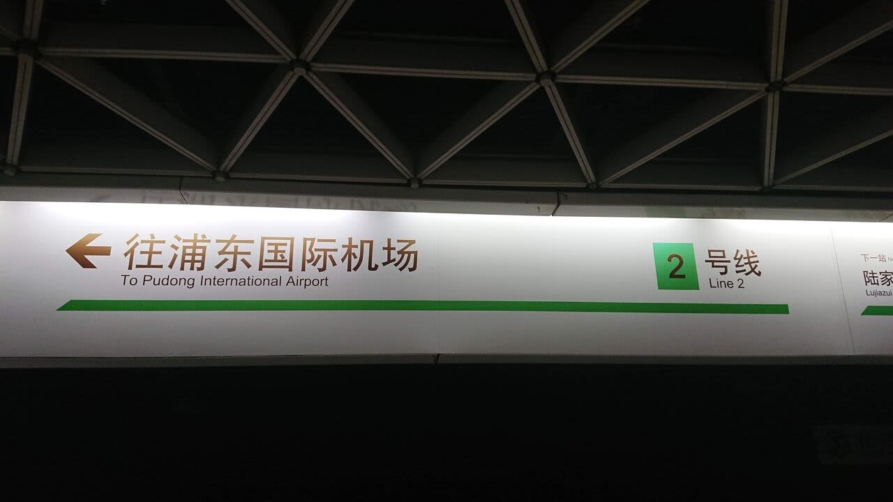 ここ南京東路駅からは、地下鉄2号線に乗れば空港に行けます。