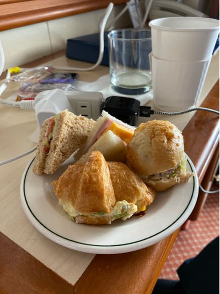 ロビーバーでサンドイッチを少しいただいて、キャビンのバルコニーでコーヒーと共に、いただきました。