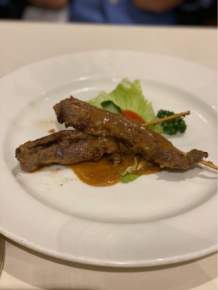 シンガポール風牛串焼き スパイシーなピーナツソース、きゅうりのマリネと共に
