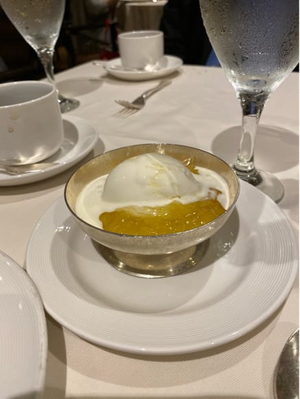 これまたパイナップルのソースのアイスクリームだったと思う…。