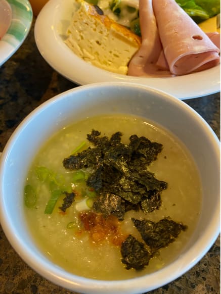 お葱とフライドガーリック、もみのりをのせると、中華っぽさが増す感じです。